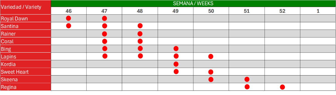 DISTRIBUCIÓN DE EXPORTACIONES DE CEREZAS